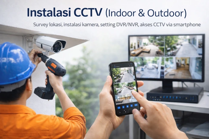 Kami menyediakan layanan pemasangan CCTV untuk rumah, toko, kantor, dan instansi dengan hasil rapi, aman, dan fungsional.