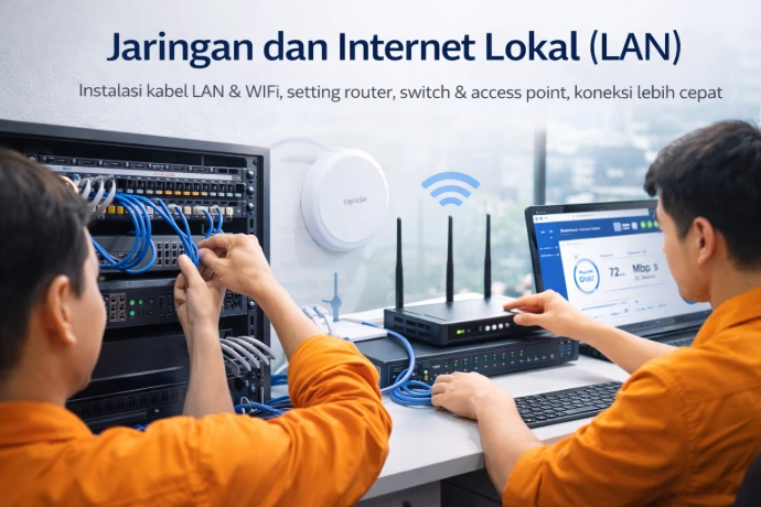 Layanan instalasi jaringan kabel dan nirkabel untuk kebutuhan kantor dan usaha. Sumatra Barat Area